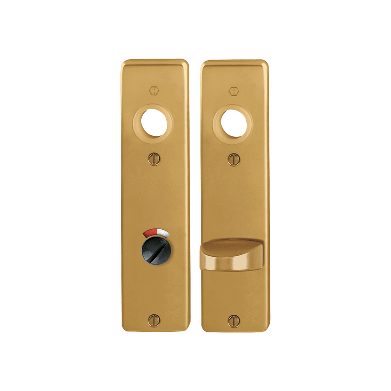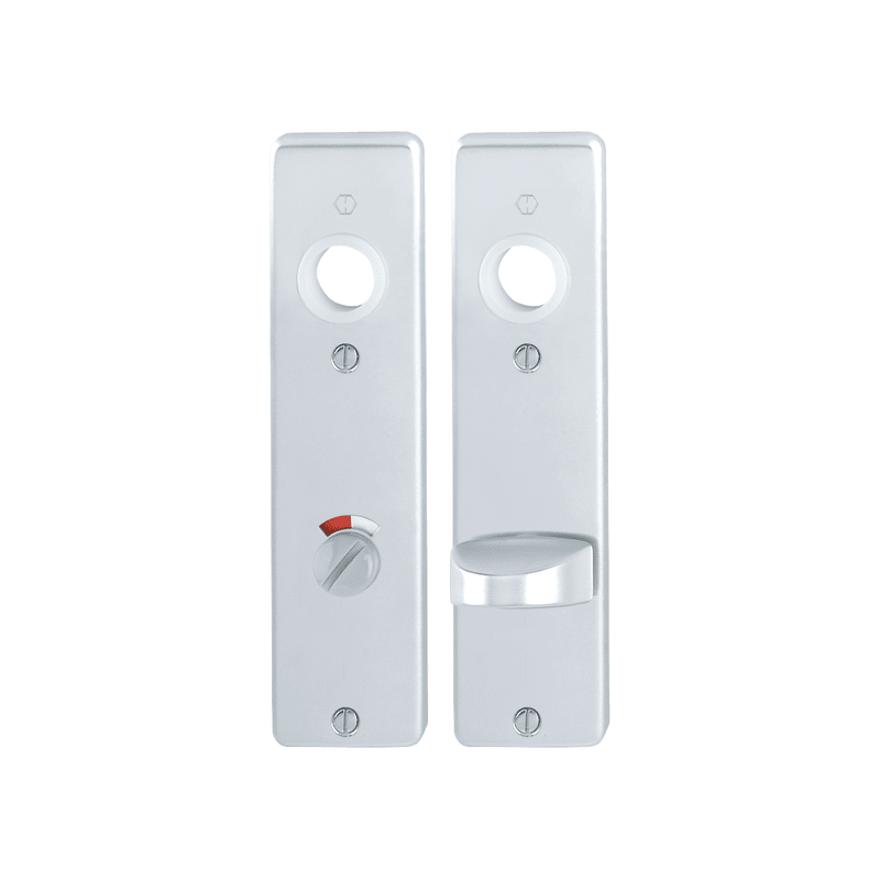 HOPPE-Aluminium-Kurzschild-Paar für Innentüren: • Lagerung: für Türgriffe lose, wartungsfreie Gleitlager • Befestigung: sichtbar, Kunststoff-Anschlagplatten und Mehrzweckschrauben