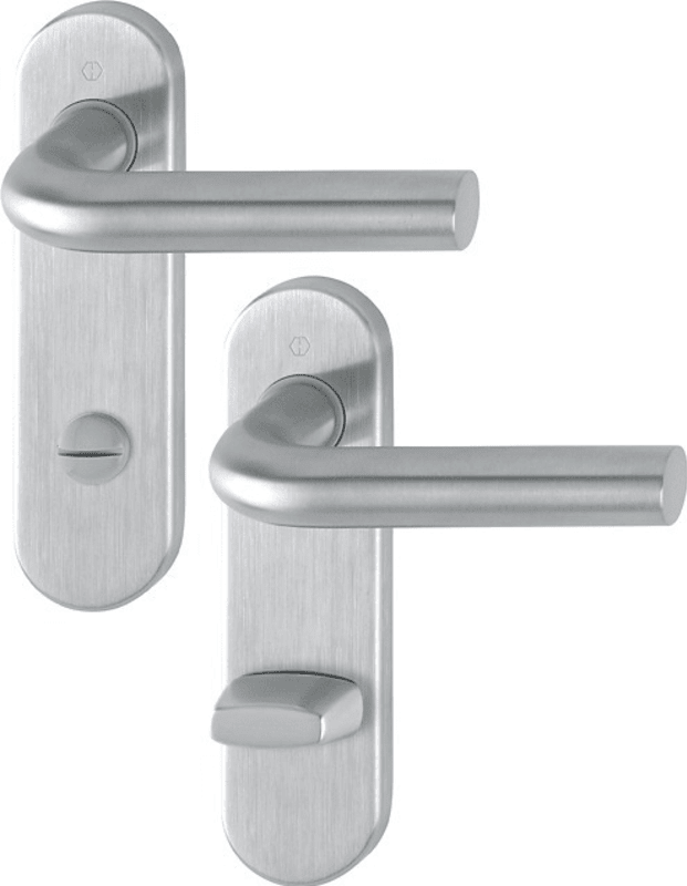 HOPPE® Drückergarnitur Bonn E150Z/353K; Abdeckung: Kurzschild; Form: oval; Vierkant: 8 mm; Material: Edelstahl; Befestigungstechnik: mit Stütznocken; Befestigungsart: verdeckt verschraubt; Basis: Drückergarnitur; Lochung: WC Schlitzkopf; Entfernung: 78 mm; Farbton: edelstahl matt; DIN-Richtung: DIN Links-Rechts; Lagerung: wartungsfrei,Gleitlager,lose; Material Unterkonstruktion: Stahl; Befestigungssystem: Schnellstiftverbindung; Drückerbefestigung: Vollstift; Drückerform: gerade; Anschlagrichtung: Drücker rechts/links verwendbar; Türstärke min.: 40 mm; Türstärke max.: 45 mm; Länge: 165 mm; Breite: 44 mm; Schildstärke: 8 mm; Drückerdurchmesser: 20 mm; Drückerhöhe: 68 mm; Drückerlänge: 130 mm; Norm: DIN EN 1906; Einsatzbereich: Objekttür; Türart: Innentüren; Türwerkstoff: Holz,Stahl; Riegel-Vierkant: 8 mm