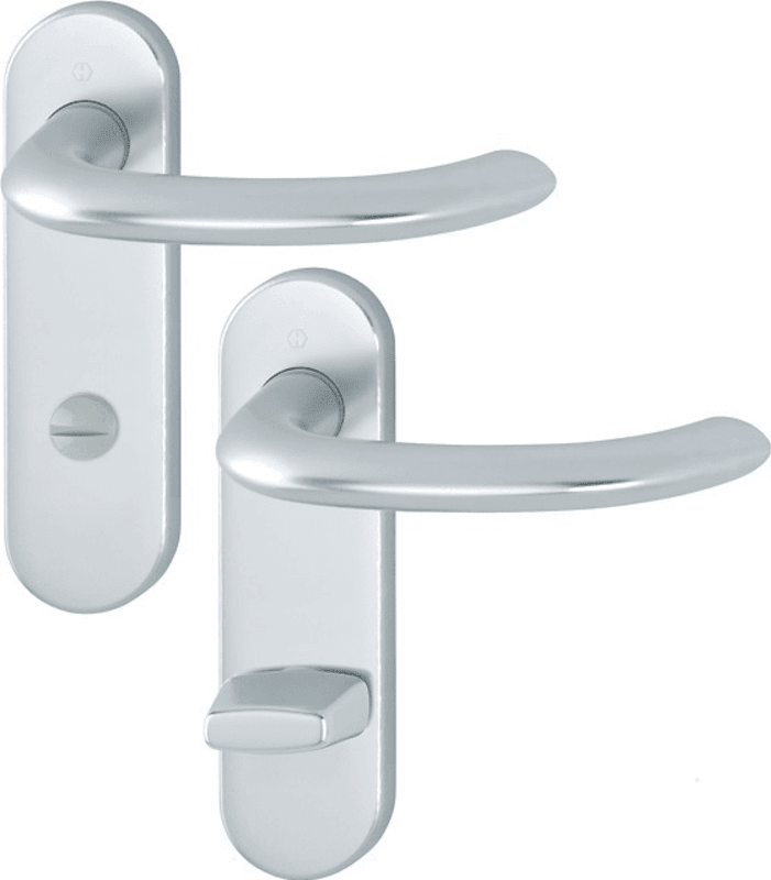 Aluminium-Kurzschild-Garnitur geprüft nach DIN EN 1906 (Benutzungskategorie 3) Türgriffe mit Hoppe-Schnellstift-Verbindung, Schilder mit Stahl-Unterkonstruktion und Stütznocken, aufklippbare Abdecksch
