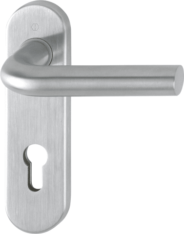 HOPPE® Drückergarnitur Bonn E150Z/353K; Abdeckung: Kurzschild; Form: oval; Vierkant: 8 mm; Material: Edelstahl; Befestigungstechnik: mit Stütznocken; Befestigungsart: verdeckt verschraubt; Basis: Drüc