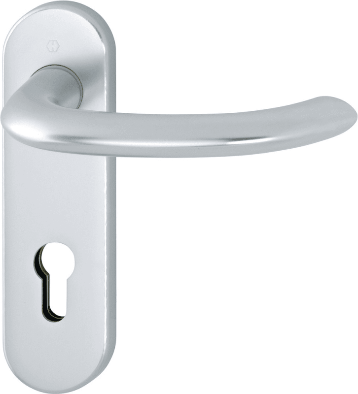 Aluminium-Kurzschild-Garnitur geprüft nach DIN EN 1906 (Benutzungskategorie 3) Türgriffe mit Hoppe-Schnellstift-Verbindung, Schilder mit Stahl-Unterkonstruktion und Stütznocken, aufklippbare Abdecksch