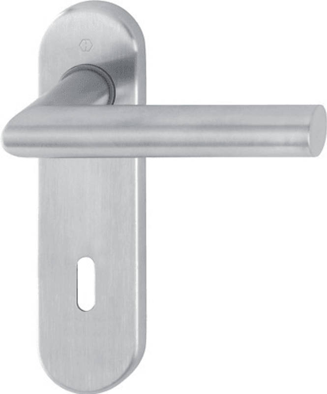 HOPPE® Drückergarnitur Amsterdam E1400Z/353K; Abdeckung: Kurzschild; Form: oval; Vierkant: 8 mm; Material: Edelstahl; Befestigungstechnik: mit Stütznocken; Befestigungsart: verdeckt verschraubt; Basis