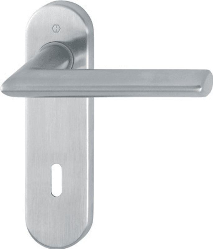 HOPPE® Drückergarnitur Stockholm E1140Z/353K; Abdeckung: Kurzschild; Form: oval; Vierkant: 8 mm; Material: Edelstahl; Befestigungstechnik: mit Stütznocken; Befestigungsart: verdeckt verschraubt; Basis: Drückergarnitur; Lochung: Buntbart gelocht; Entfernung: 72 mm; Farbton: edelstahl matt; DIN-Richtung: DIN Links-Rechts; Lagerung: wartungsfrei,Gleitlager,lose; Material Unterkonstruktion: Stahl; Befestigungssystem: Schnellstiftverbindung; Drückerbefestigung: Vollstift; Drückerform: Gehrung,L-Form; Anschlagrichtung: Drücker rechts/links verwendbar; Türstärke min.: 35 mm; Türstärke max.: 45 mm; Länge: 165 mm; Breite: 44 mm; Schildstärke: 8 mm; Drückerhöhe: 61 mm; Drückerlänge: 131 mm; Norm: DIN EN 1906; Einsatzbereich: Objekttür; Türart: Innentüren; Türwerkstoff: Holz,Stahl