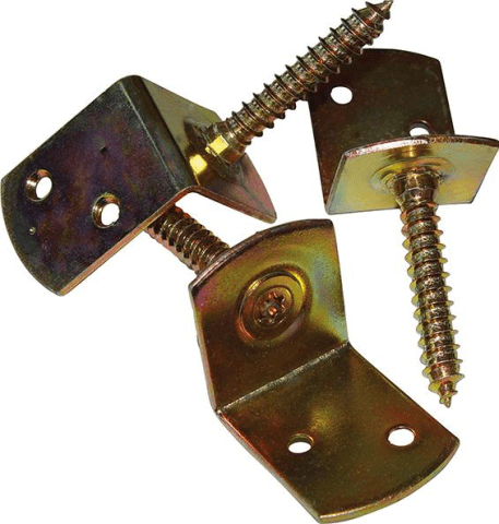Flechtzaunbeschlag, mit Schraube, Innen-6-rund-Antrieb• L-Form • Mit angeschweißter Innen-6-rund-Holzschraube 9 x 45 mm • Mit 2 Löchern, Loch-Ø 4 mm