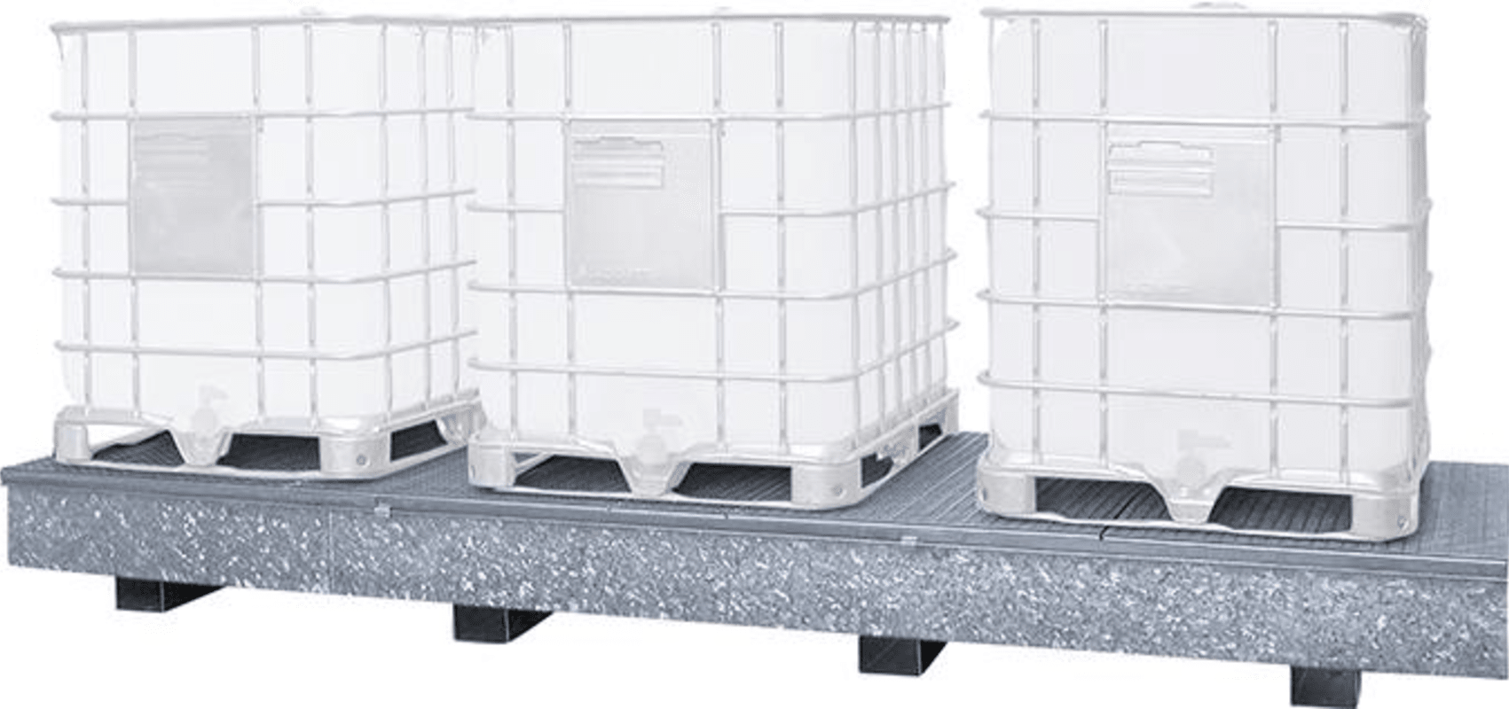 Auffangwanne WSP-KTC 1000 Liter, feuerverzinkt• Wanne: aus 3-mm-Stahlblech, flüssigkeitsdicht verschweißt • Entsprechend WHG, Ü-Zeichen gemäß StawaR • Gitterrost: feuerverzinkt, herausnehmbar • Ko