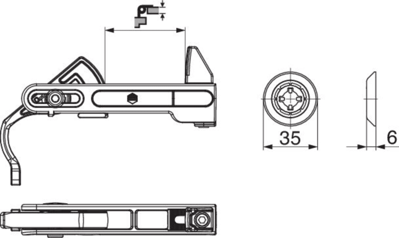 Maco Kreuzband MMV seitliche Regulierung ohne Anschraublasche mit Kröpfung 7 AT=16-24 schwarz-S 100001