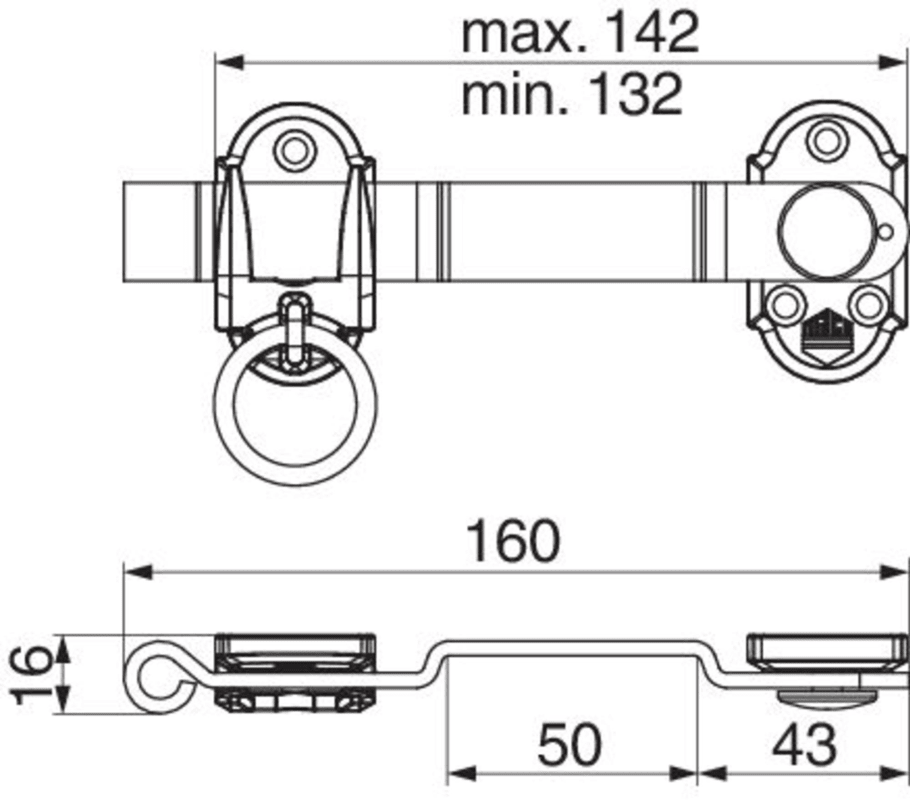 Ladenmittelverschluss mit Ringteil mit gekröpfter Kurbel L=160 rechts/links schwarz-S
