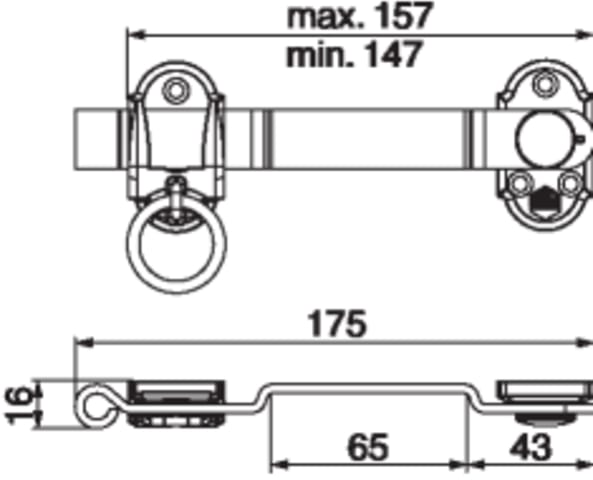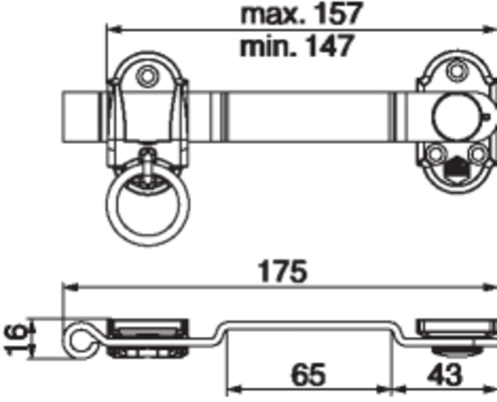 Ladenmittelverschluss mit Ringteil mit gekröpfter Kurbel L=175 rechts/links grau-S