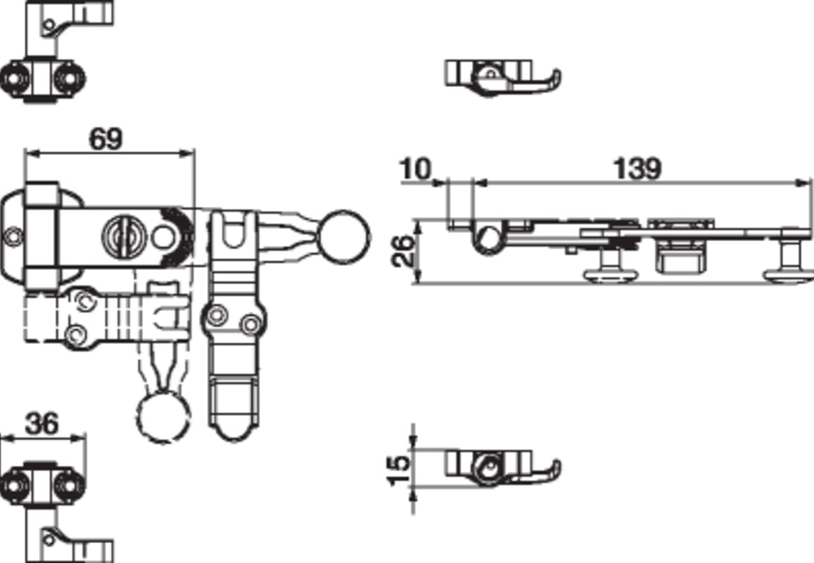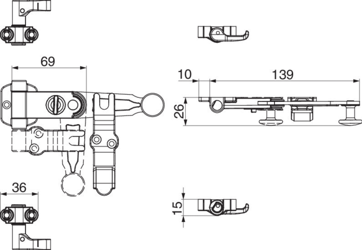 Ladenverschluss 2F mit Kurbel lang L=139 ohne Schließzapfenplatten ohne Sicherungsblock mit Schließklauen 36 breit rechts/links schwarz-S