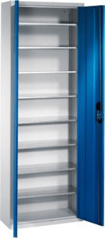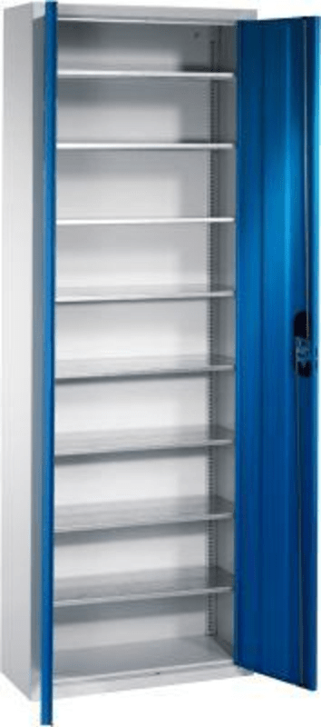 CP Lager-Regalschrank B700xT300xH1980 mm RAL 7035/5012 mit Türen 9 Fachböden