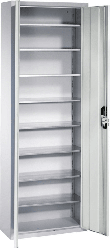 CP Lager-Regalschrank B700xT300xH1980 mm RAL 7035 mit Türen 9 Fachböden