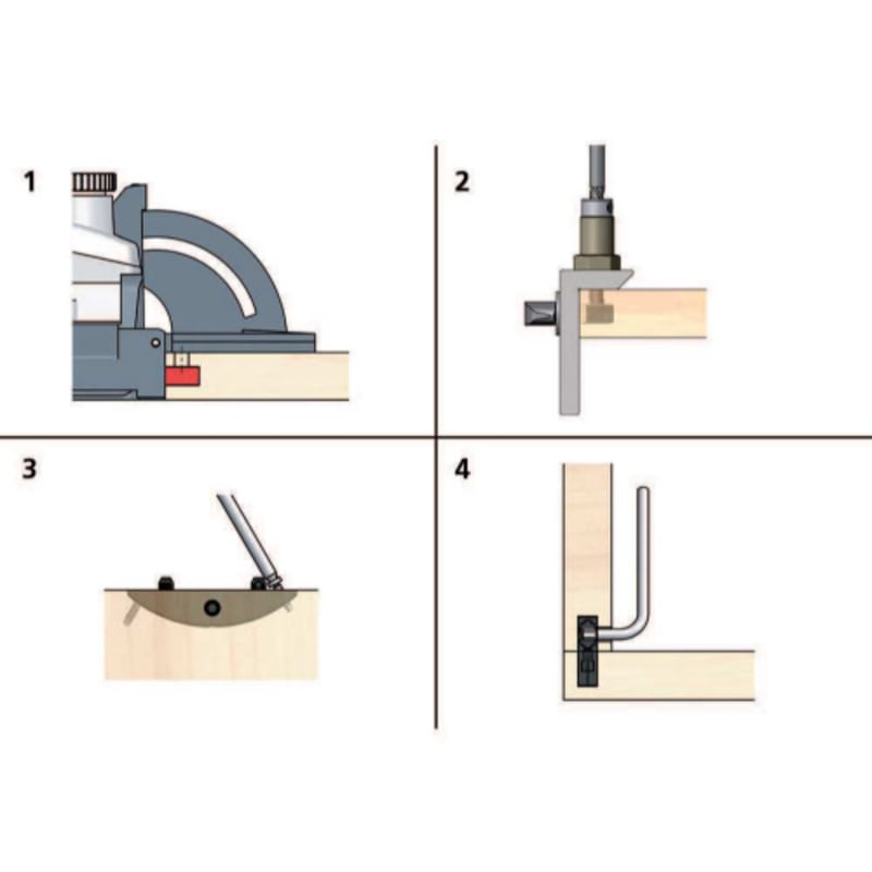 Clamex S-18 ist ein wiederlösbarer Verbinder und wird in einer 8 mm breiten Nut festgeschraubt. Durch die minimalistische 6 mm Bedienungsöffnung wird Clamex S-18 über einen Hebel kraftvoll verbunden und wieder gelöst. Clamex S-18 kann mit jeder Lamello Nutfräsmaschine eingesetzt werden, ermöglicht ästhetische Verbindungen in allen Winkeln und ist ideal für feste oder zerlegbare Gehrungsverbindungen. Clamex S-18 wird in Gehrungen ab 19 mm Plattenstärke oder in stumpfen Verbindungen ab 15 mm eingesetzt.
