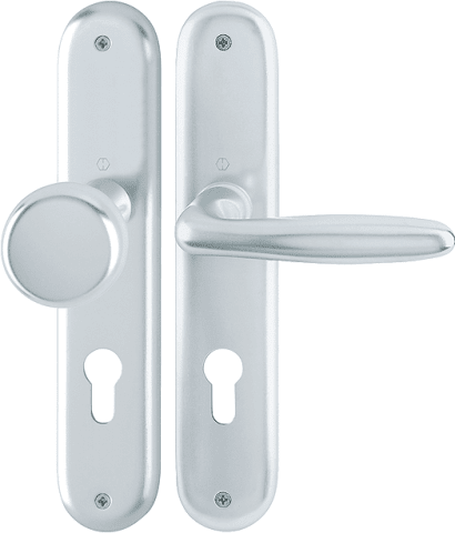 HOPPE-Aluminium-Langschild-Türgriff-Garnitur für Innentüren. Eigenschaften: • geprüft nach DIN EN 1906: 37-0140A, Objekt-Garnitur • Lagerung: Türgriffe lose, Rückholfedern rechts/links verwendbar, wa