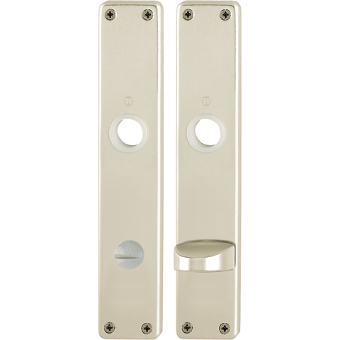 HOPPE-Aluminium-Langschild-Paar für Innentüren: • Lagerung: für Türgriffe lose, wartungsfreie Gleitlager • Befestigung: sichtbar, Mehrzweckschrauben
