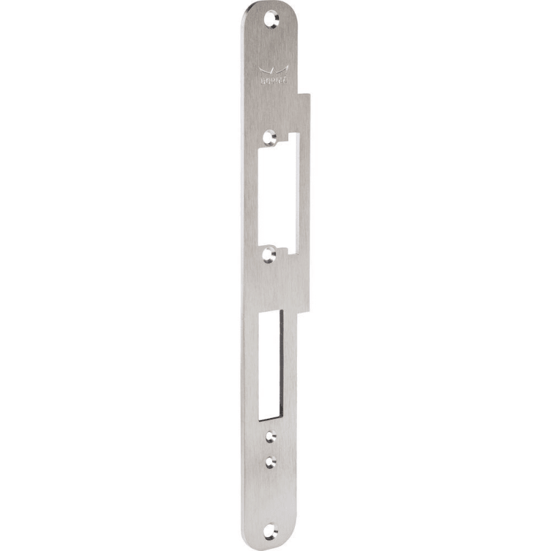 DORMA, Türrahmen-Lappenschließblech, Ausführung: für Türöffner, ohne Fixrillen, Modellnummer: FLR30-RK, Material: Edelstahl, DIN-Richtung: DIN Links-Rechts, Farbton: edelstahl, Oberfläche: matt, Ergänzung: mit Fallen und Riegelausschnitt, Türausprägung: Türe stumpf, Türflügelanzahl: einflügelig, Befestigungsart: zum Aufschrauben, Schließblechbreite: 30 mm, Schließblechbreite incl. Lappen: 37,5 mm, Schließblechlänge: 250 mm, Schließblechstärke: 3 mm, Vorgerichtet: für Riegelschaltkontakt, Türart: Objekttür, Rahmenwerkstoff: Holz