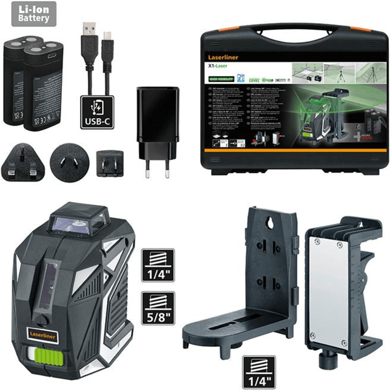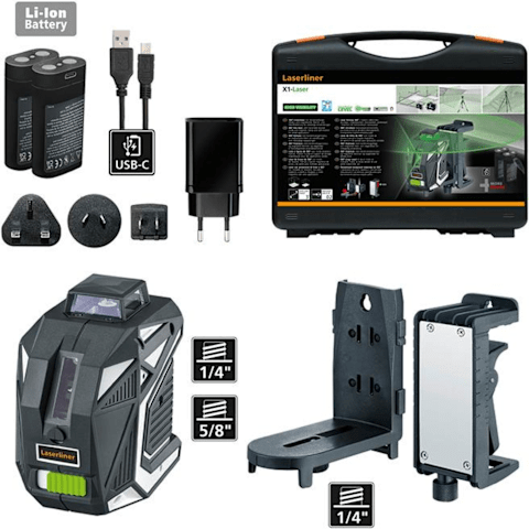 Linienlaser X1-Laser• Ausrichten von Horizontalen, Vertikalen und Neigungen • Horizontale 360°-Laserlinie • Einzeln schaltbare Laserlinien • Automatische Ausrichtung • Integrierter Handempfänger-M