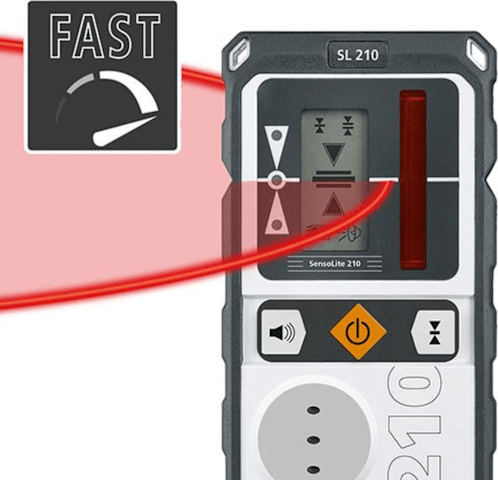 Lieferung: Mit 4 Mignon-Akkus 1,2V AA/HR6, Ladegerät/Netzteil mit internationalem Adapter, SensoLite 210, Leichtstativ 150 cm, Stativ-/Wandhalterung, Universalhalterung, Teleskop-Nivellierlatte LT 4 m, Fernbedienung, Tragegurt und Tragekoffer.