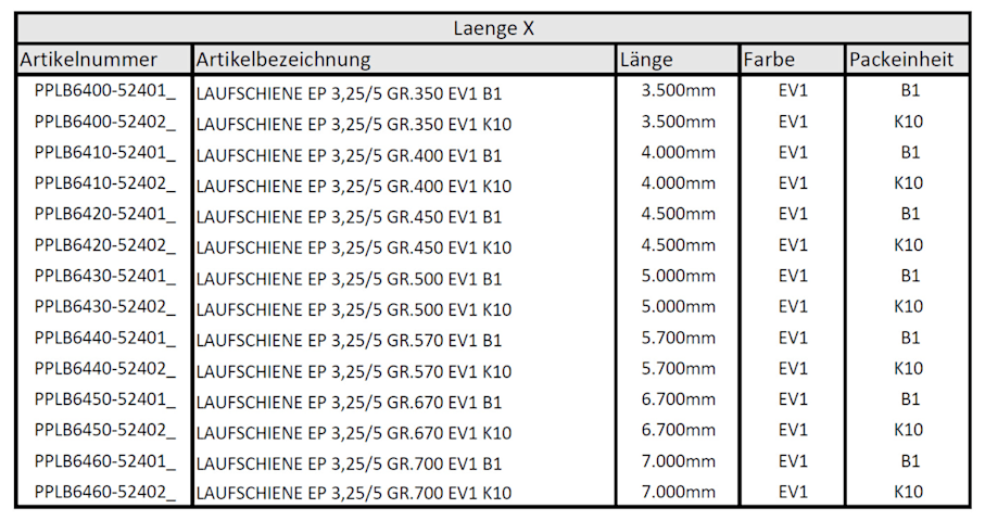 LAUFSCHIENE EP 3,25/5 GR.570 EV1 B1 PPLB6440-524010