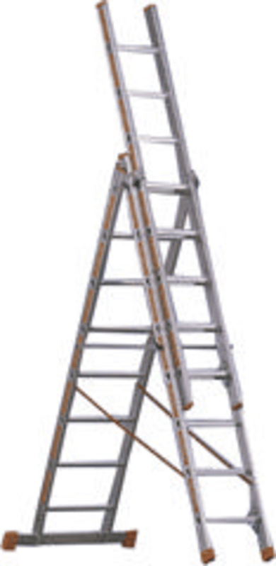 Allzweckleiter 3 -tlg. Wahlweise als Schiebeleiter, Anlegeleiter, Stehleiter oder verlängerbare Stehleiter. • Spezialgelenke • Sicherer, freistehender Stand der Leiter durch Traverse