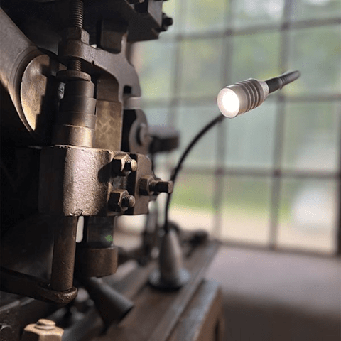 LED-Arbeitsleuchte Punktstrahle • Aluminiumgehäuse mit Flexwell • Standfuß mit gummiummanteltem Magne • Hochleistungs-LED, wasserdicht verbau • Großer Abstrahlwinkel bei gleichmäßiger Ausleuchtun • Ein-/Ausschalter am Lampensocke • Staub- und spritzwassergeschützt bis Stecker