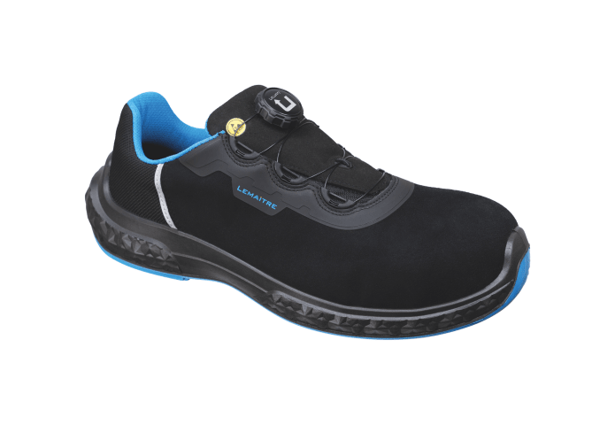 Zu dieser Kollektion gehört auch der bequeme ESD-Sicherheitshalbschuh MILO S3 ESD – ein Industrie-Modell für lange Einsatze. Das Obermaterial besteht aus weicher, schwarzer Mikrofaser, mit TPU-Beschichtung und wasserabweisendem Textil. Dank einer seitlichen Reflexpaspel fällt der Schuh auch bei schwierigen Lichtverhältnissen direkt auf, deshalb sorgt er so zusätzlich für Sicherheit am Arbeitsplatz.
