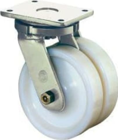 Schwerlast-Doppel-Lenkrolle S100.B15 • Kugellager im Gabelkopf und in den Rädern • Material Gehäuse: Stahlschweißkonstruktion, verzinkt • Material Radkörper: Kunststoff • Material Lauffläche: Kunststoff
