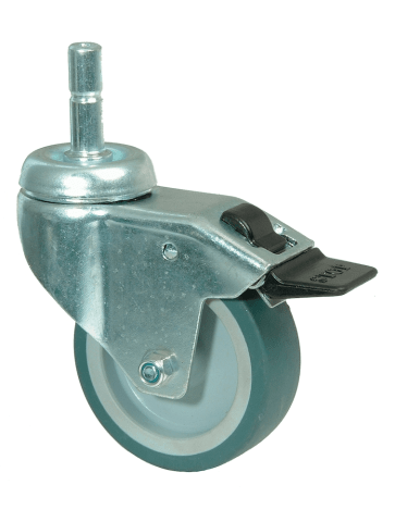 Eigenschaften: • Gabel aus Stahlblech • verzinkt-chromatiert • zweireihiger Kugelkranz im Gabelkopf Technische Daten: • Radbreite: 18 mm • Stift/Zapfen: 11 mm • Ausladung: 26 mm
