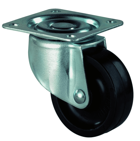 • Stahlblechgehäuse verzinkt • Kunststoffrad • Geeignet für weiche Böden