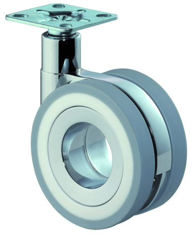 • Platte • Gehäuse aus Zinkdruckguss • Graue Polyurethanbereifung