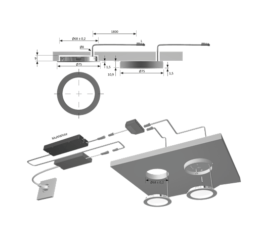 Magic by Halemeier LitePanel 68 schwarz nw 12VDC 4,3W LTG 1,8m M1