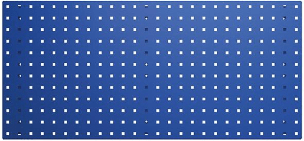 perfo Lochplatte • Symmetrisch perforierte, rückseitig versteifte Platten aus 1,25 mm starkem Stahlblech • Platten (wie auch Haken) für höchste Belastung • Oberfläche widerstandsfähige Pulverbeschich