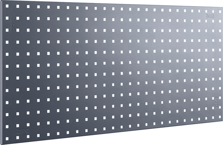 perfo Lochplatte • Symmetrisch perforierte, rückseitig versteifte Platten aus 1,25 mm starkem Stahlblech • Platten (wie auch Haken) für höchste Belastung • Oberfläche widerstandsfähige Pulverbeschich