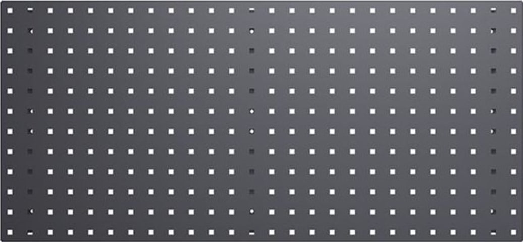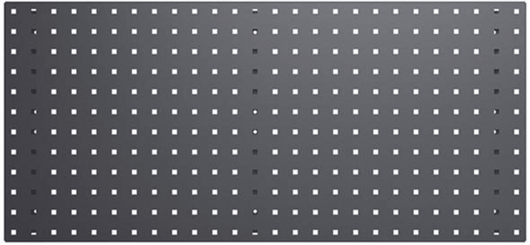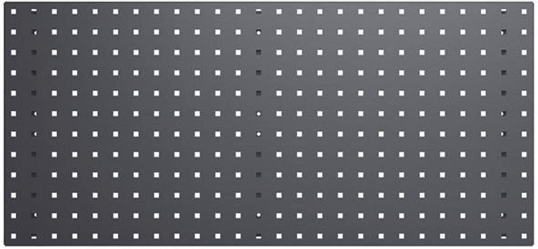 perfo Lochplatte • Symmetrisch perforierte, rückseitig versteifte Platten aus 1,25 mm starkem Stahlblech • Platten (wie auch Haken) für höchste Belastung • Oberfläche widerstandsfähige Pulverbeschich