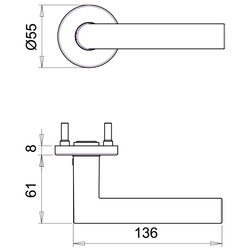 Halbgarnitur Riva 2108/5200, ohne Schlüsselrosette, rund, Vierkant 10mm, DIN Links-Rechts, mit Stütznocken, edelstahl matt festdrehbar