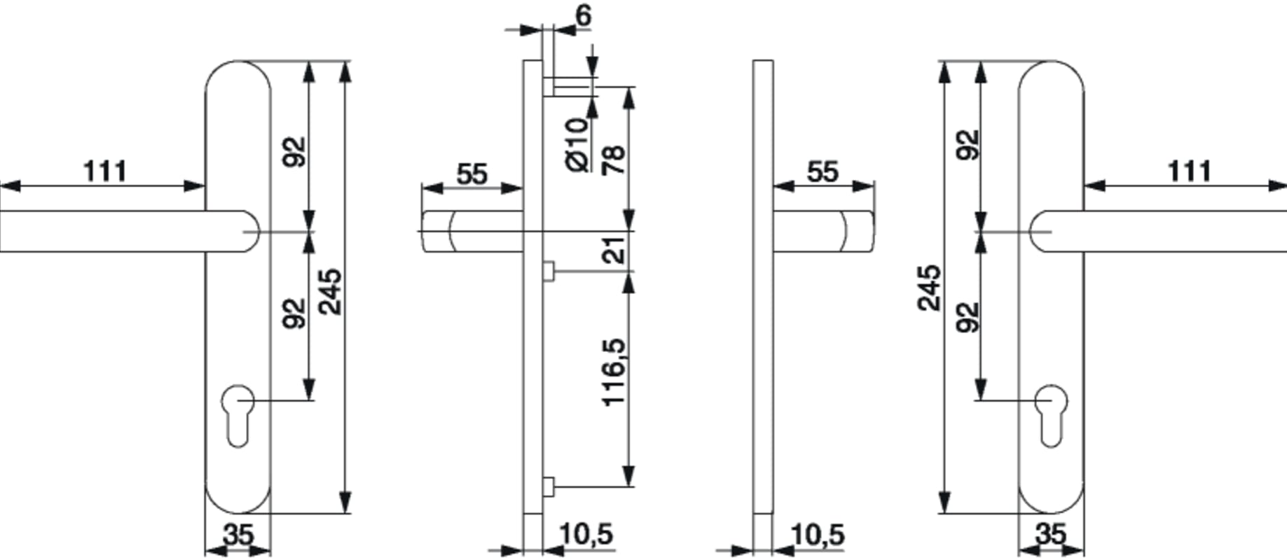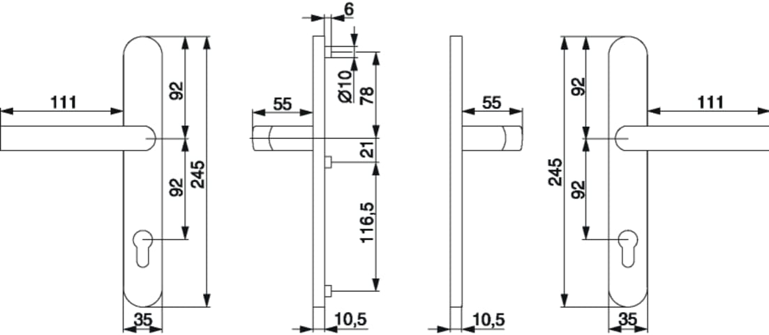 Drückergarnitur Schmalschild mit Nocken 10 E=92 verkehrsweiß RAL 9016