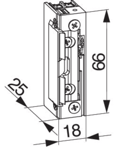 MACO E-Öffner mit Fallenrutsche schmal mit mechanischer Entriegelung und starker Feder 10-24 V