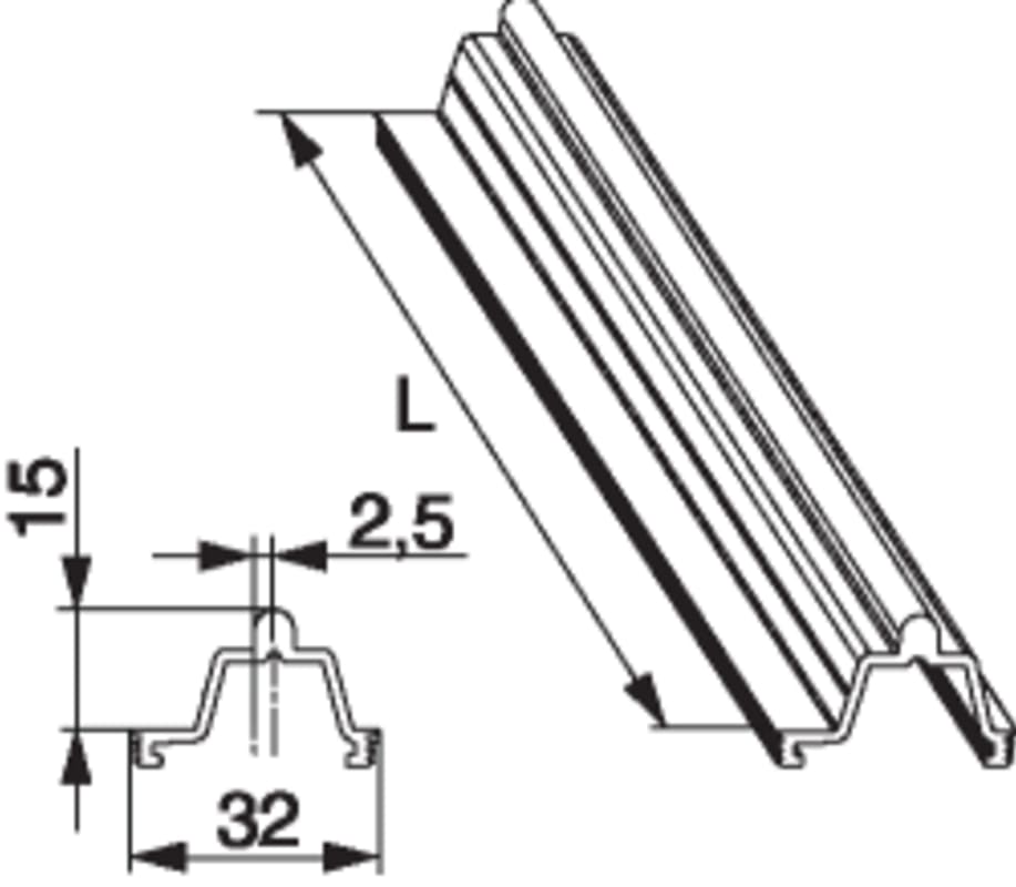 Laufschiene HS-ST hoch in Alu Versatz 2,5 Nut 30x5 H=15mm L=3.500mm silber