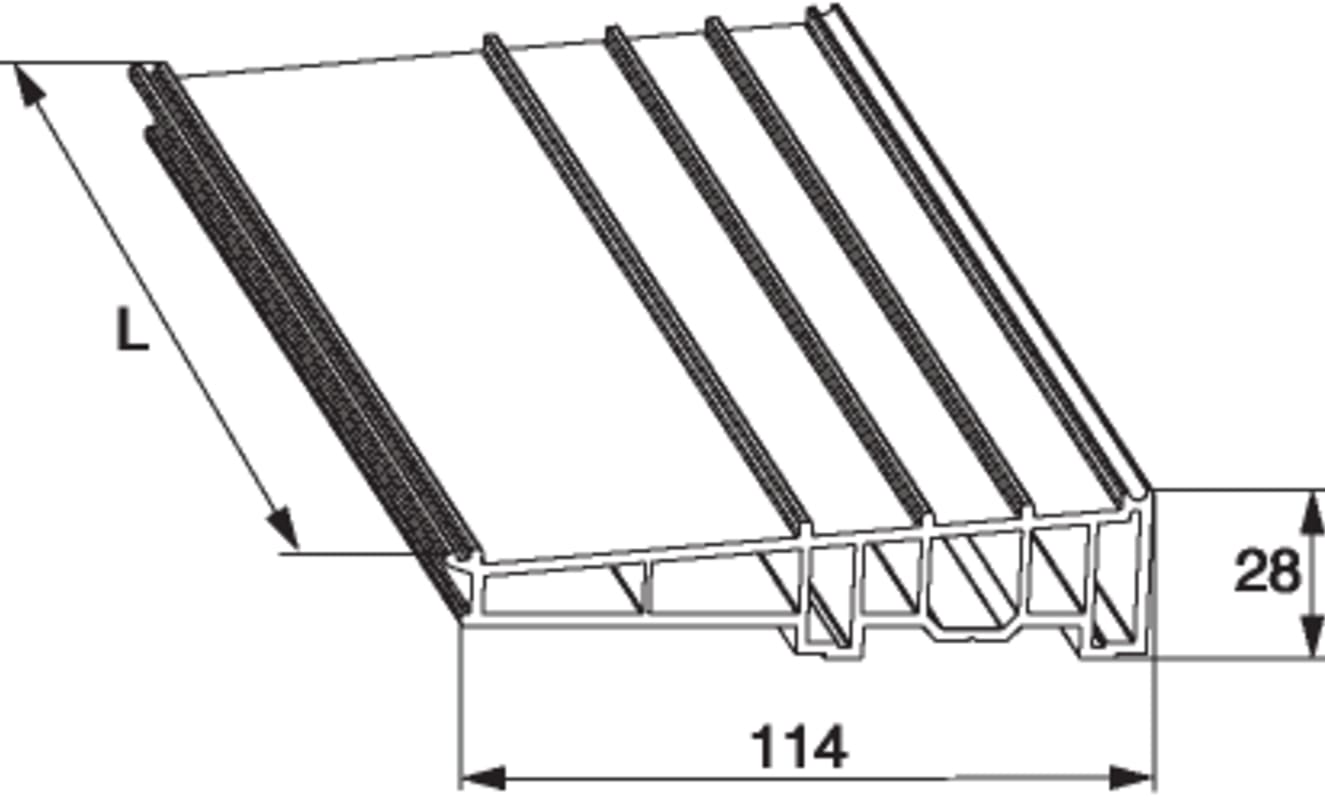 Zwischenprofil in PVC mit Einhängenut Rehau Synego B=112mm 79/32 L=1.500mm silber