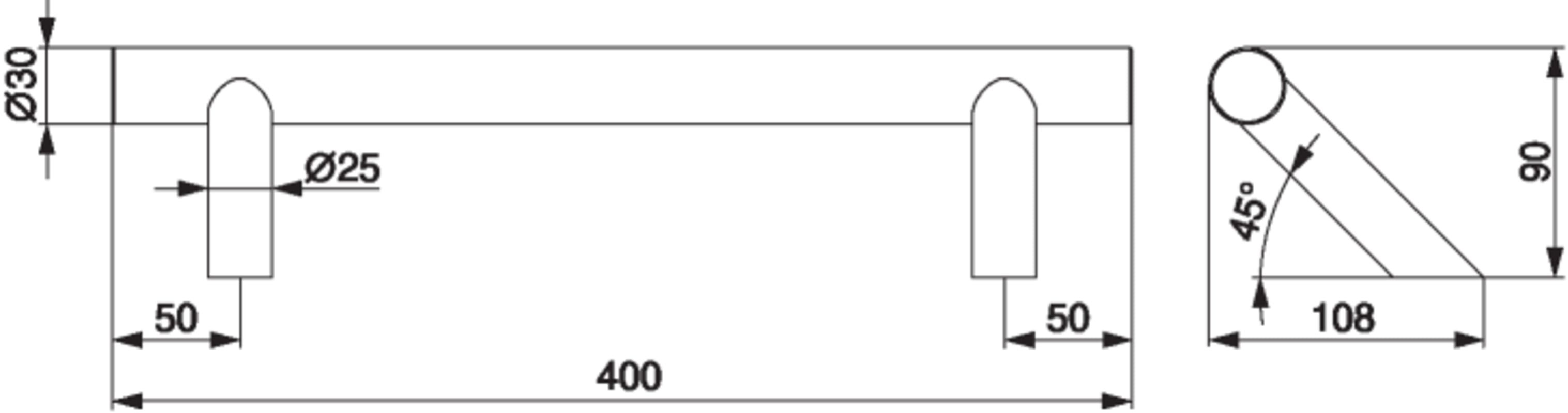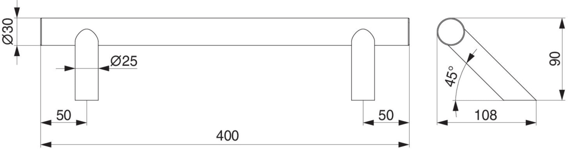MACO Stoßgriff schräge Stütze L=400 edelstahl