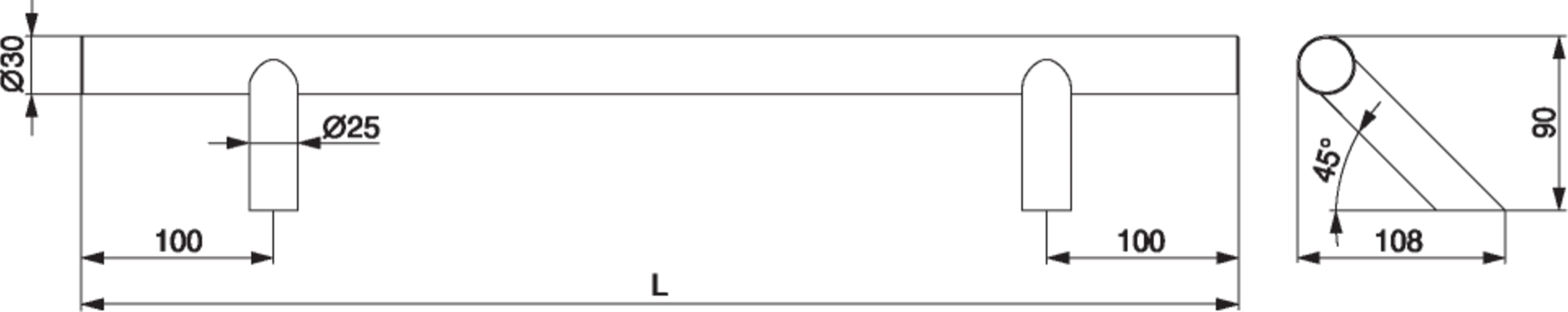 MACO Stoßgriff schräge Stütze L=600 edelstahl