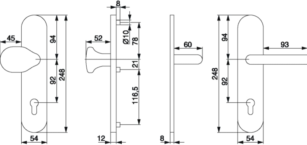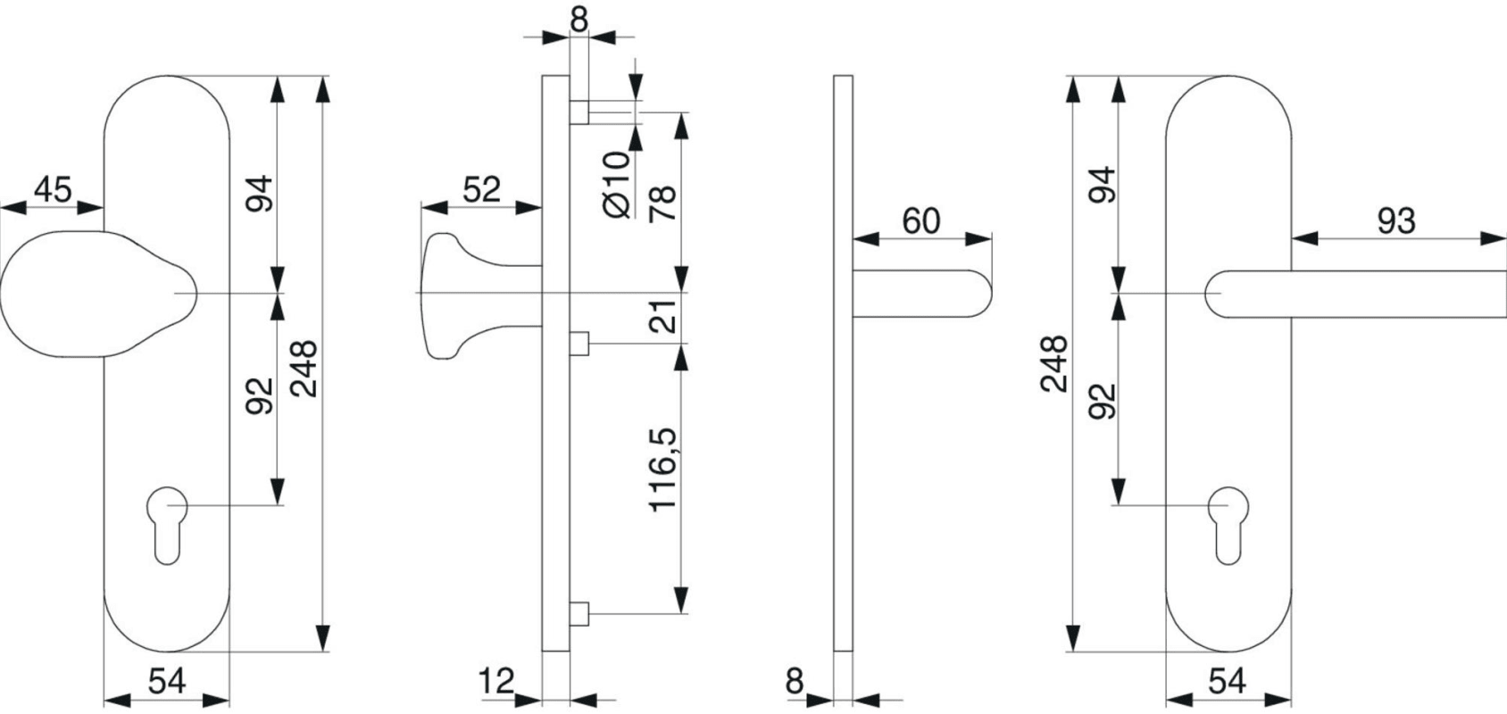 Wechselgarnitur Breitschild mit Nocken 10 E=92 Profilstärke 64-83 mm edelstahl