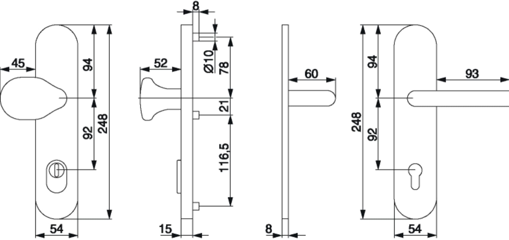 Wechselgarnitur Breitschild mit Nocken 10 E=92 Profilstärke 64-83 mm edelstahl