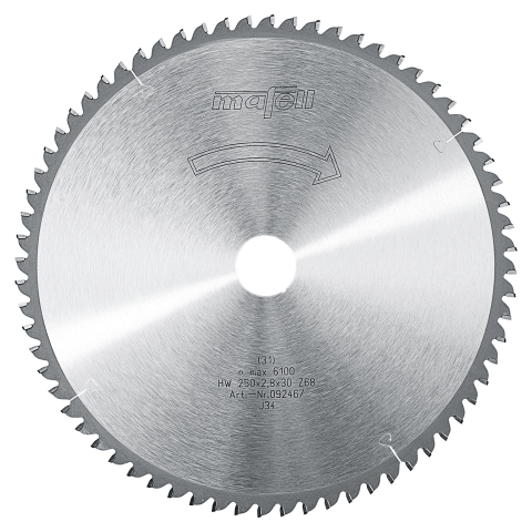 Sägeblatt-HM 250 x 1,8/2,8 x 30 mm, Z 68, FZ/TR, für Kunststoff- und Aluminium-Profile