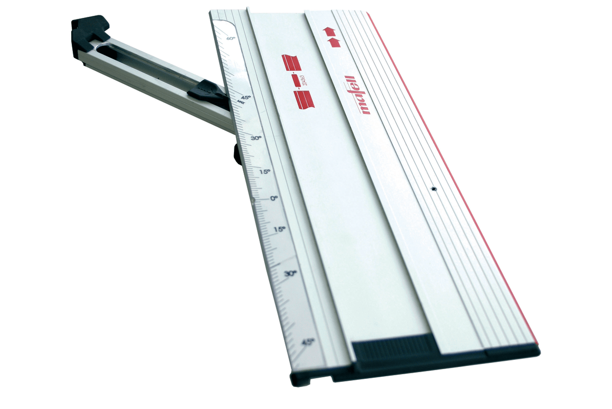 Winkelrechte Schnitte, exakt nach Skala mit dem Winkelanschlag von MAFELL. Der Winkelanschlag kann mittels dem Adapter mit allen F-Führungsschienen verbunden werden. Einfach den Adapter einsetzen, zusammenschieben und arretieren, fertig. Die für den Winkelanschlag benötigte Gradzahl wird einfach über die große und gut lesbare Skala eingestellt und über die Arretierung fixiert.