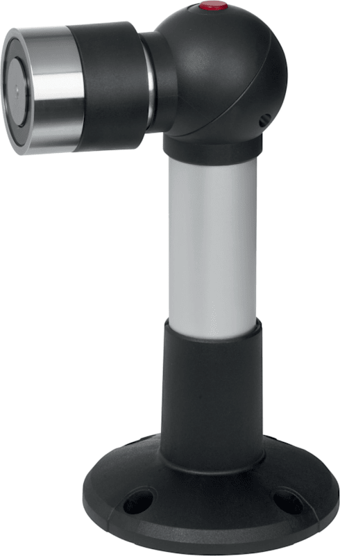 Haftmagnet mit Distanzhalter für Boden- und Wandmontage umbaubar. Mit integriertem Unterbrechertaster und mit integriertem Dämpfungselement für einen weichen, gedämpften Anschlag der Tür.