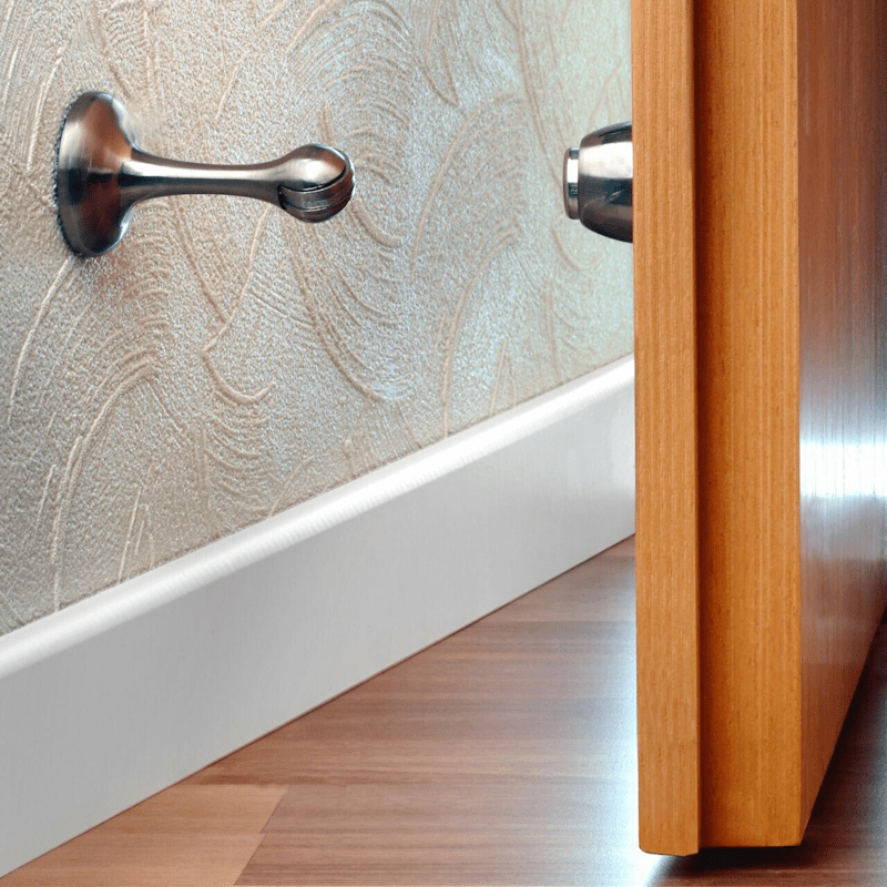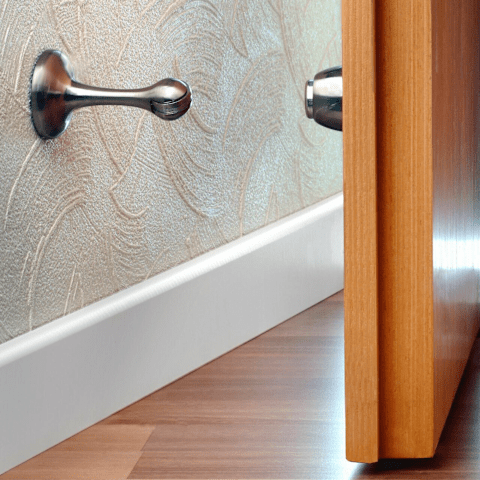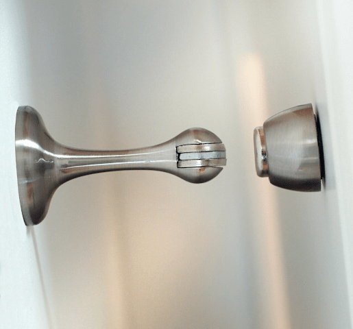 Für Wandmontage. Stoppt die Tür und hält sie fest. Edelstahl-Optik- gebürstet, lackiert. Inklusive Befestigungsmaterial. Haltekraft: ca. 6-7 kg.
