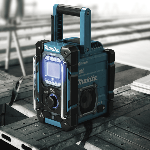 Robustes Baustellenradio mit Ladefunktion für Makita CXT- und LXT-SchiebeakkusBaustellenradio für den Empfang von DAB/DAB+ und FM/AM sowie Bluetooth®-Funktion. Mit Ladefunktion für Makita Lithium-Ion