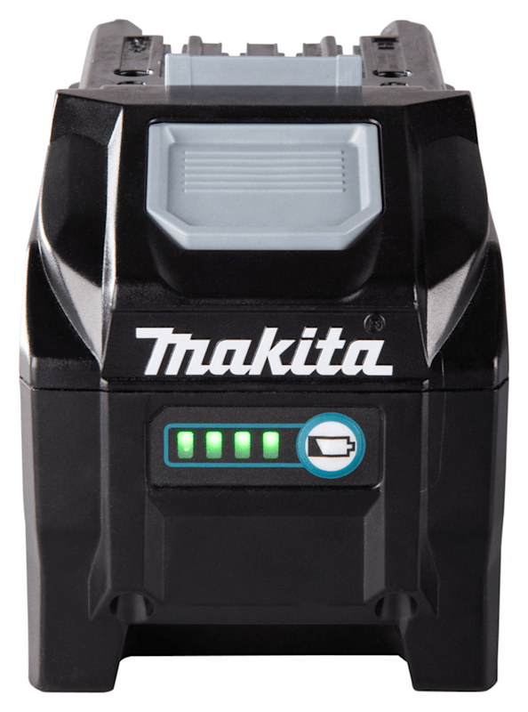 Li-Ion-Akku der XGT-Serie mit 40V max und einer Kapazität von 5,0 Ah. Mit dem Ladegerät DC40RA in 35 Minuten zu 80 % und in 50 Minuten voll geladen. Vier grüne LED zeigen die Restkapazität des Akkus. Das Akku-Gehäuse ist für den harten Baustelleneinsatz konzipiert und entspricht dem IP64-Schutzstandard.