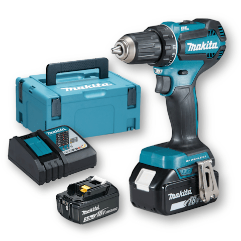KOMPAKT & LEISTUNGSSTARK – Der Makita DDF485RFJ überzeugt mit bürstenlosem Motor, bis zu 50 Nm Drehmoment und 2-Gang-Vollmetall-Getriebe – ideal für präzise Schraub- und Bohrarbeiten.