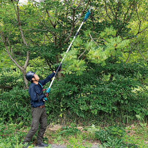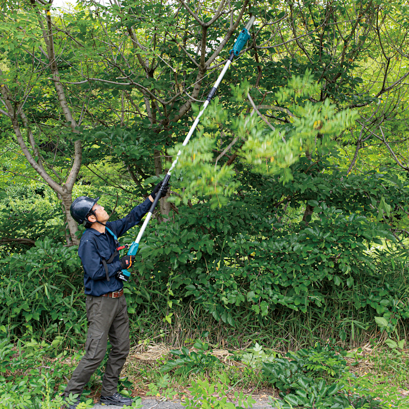 Akku-Hochentaster zum Ausasten von Bäumen vom Boden aus. Die Schienenlänge von 20 cm und die Kettengeschwindigkeit von 6,7 m/s machen diese Kettensäge an einem teleskopierbarem Schaft zu einem wichtigen Helfer in der Gehölzpflege. Die XPT-Technologie ermöglicht den Einsatz auch unter harten Bedingungen. Die Länge lässt sich zwischen 1,62 m und 2,52 variieren.